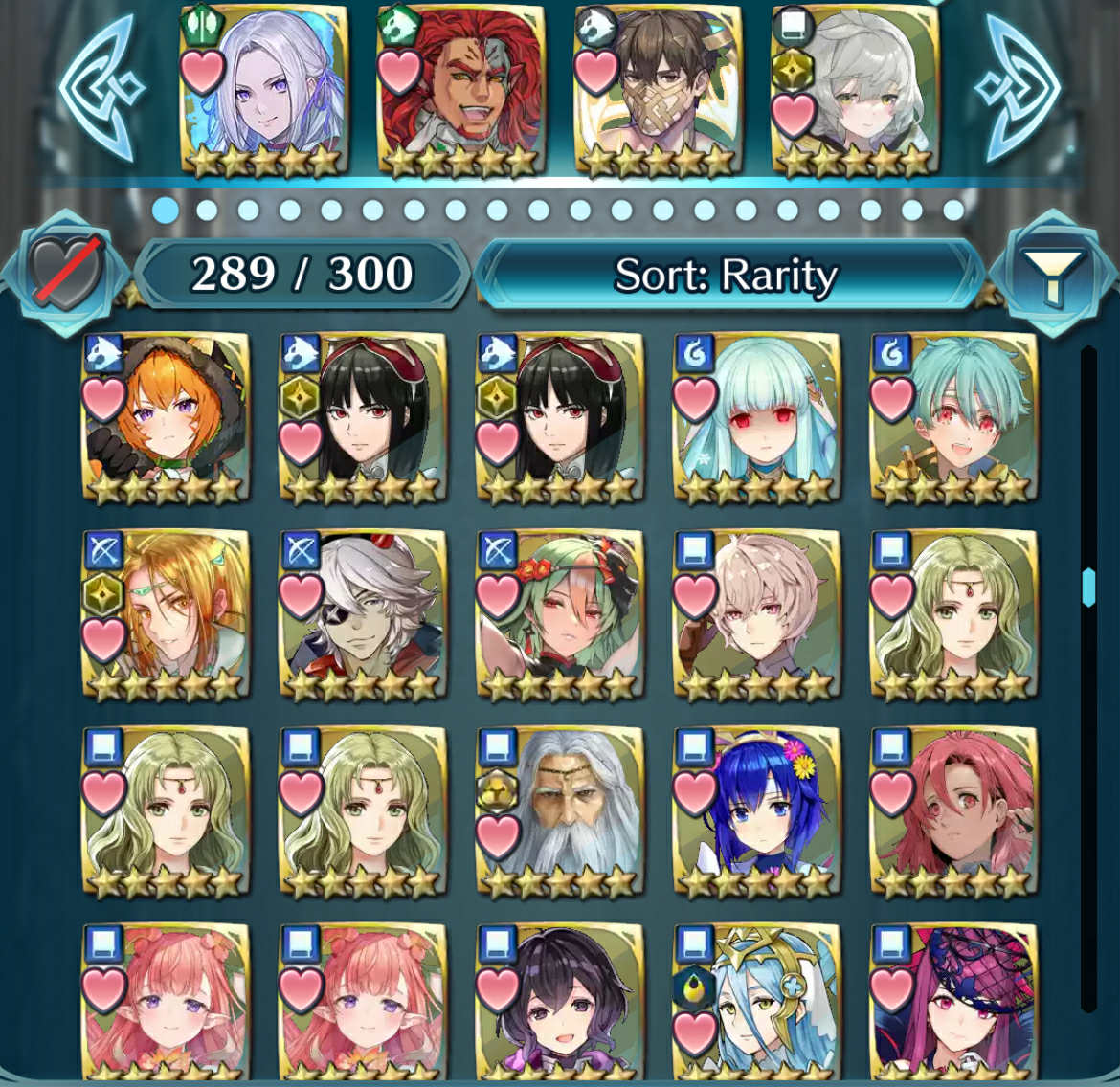 About 6,100 Orbs (unclaimed in the mailbox). See Sample Picture for Resources (Similar). 200+ 5-Star Heroes (Guarantee Units shown in the picture, others are Random)