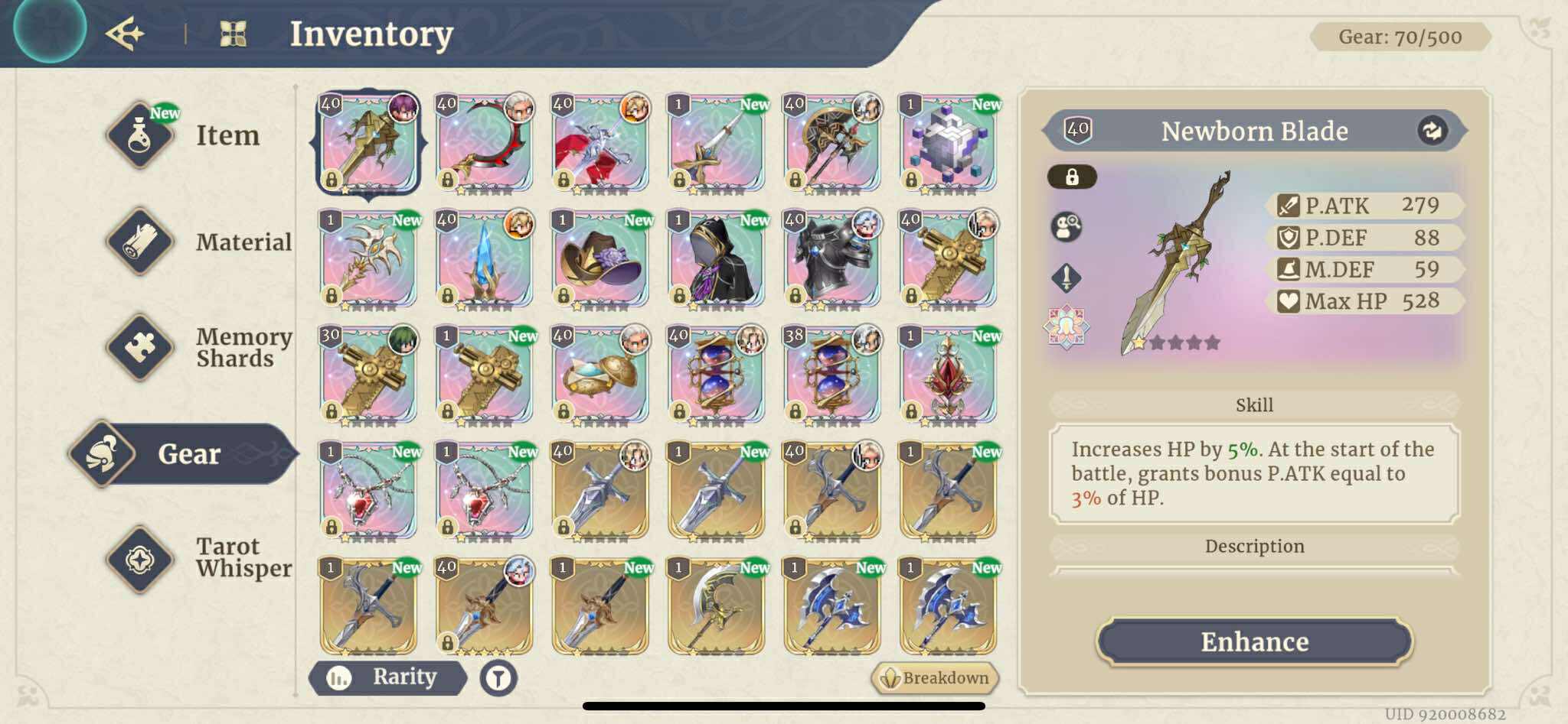 Sword of Convallaria Starter Account with a massive head start! This fresh starter account has only completed the tutorial and is loaded with premium resources: