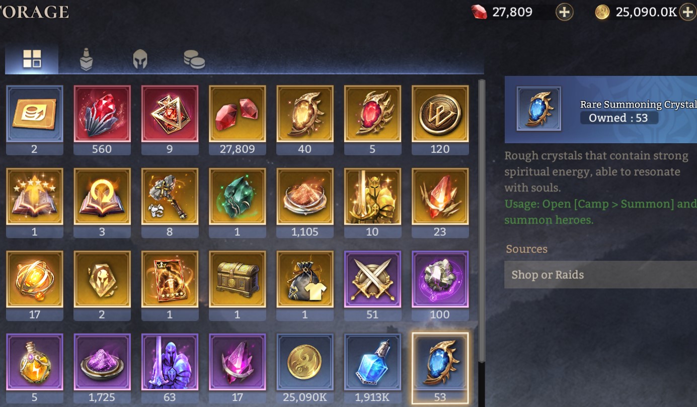 Prime Legendary Pick + Legendary Summoning Crystals + Rare Summoning Crystals