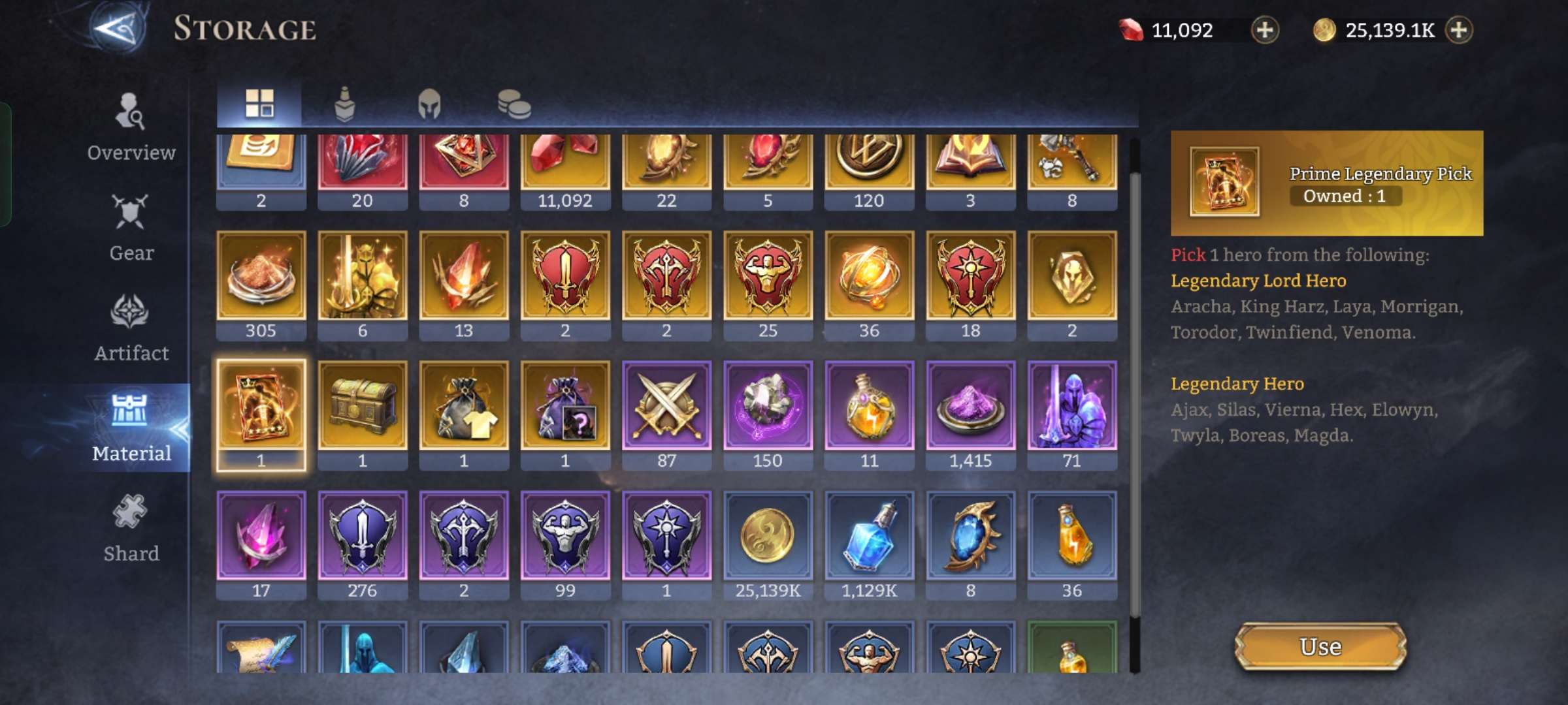 Legendries + Resources (See Pictures)